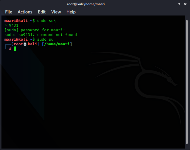| Description | I found a bug in terminal while enter code-'sudo su' to get root access if we type code-'sudo su\' by mistake it pop up