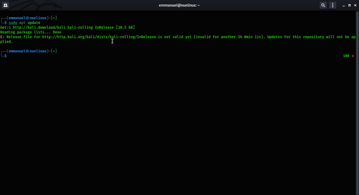 | Description | kali doesnt update which hinders me from installing pip | ||||