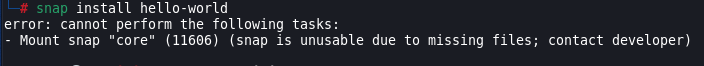 Hi, apparently this has been reported on Debian's side (Kali gets this package straight from Debian): https://bugs.debian.org/cgi-bin/bugreport.cgi?bug=993233 It seems like the problem is solved in that later version of snapd in Debian unstable, the version 2.51.7-1. |