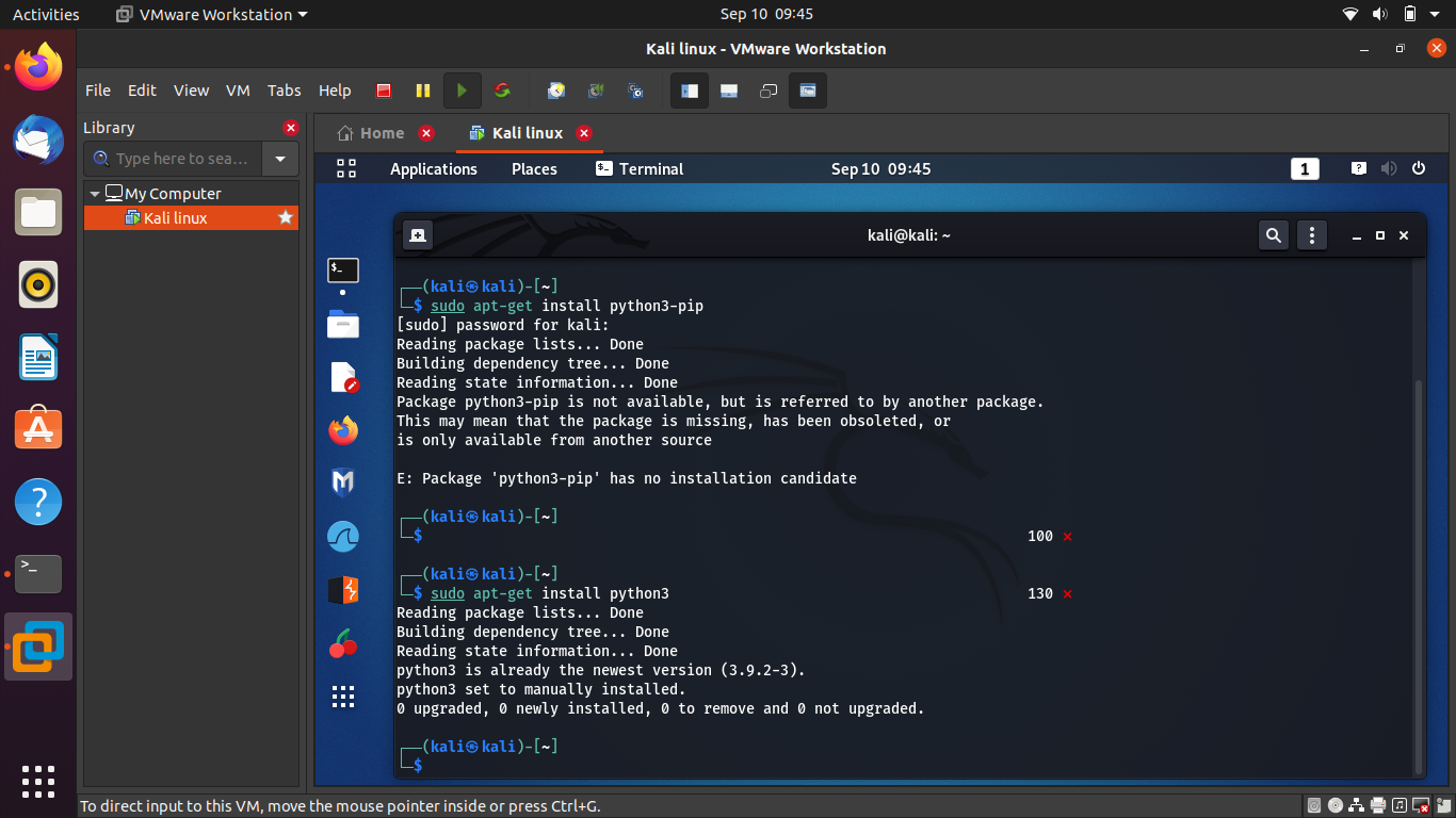 | Description | I want to insatll python3 pip using command sudo apt-get install python3-pip, but i am getting error. E: Package 'python3-pip' has no installation candidate. The python version is new (python3 is already the newest version (3.9.2-3)). Please help me to install pip or any another way to fix bug | ||||