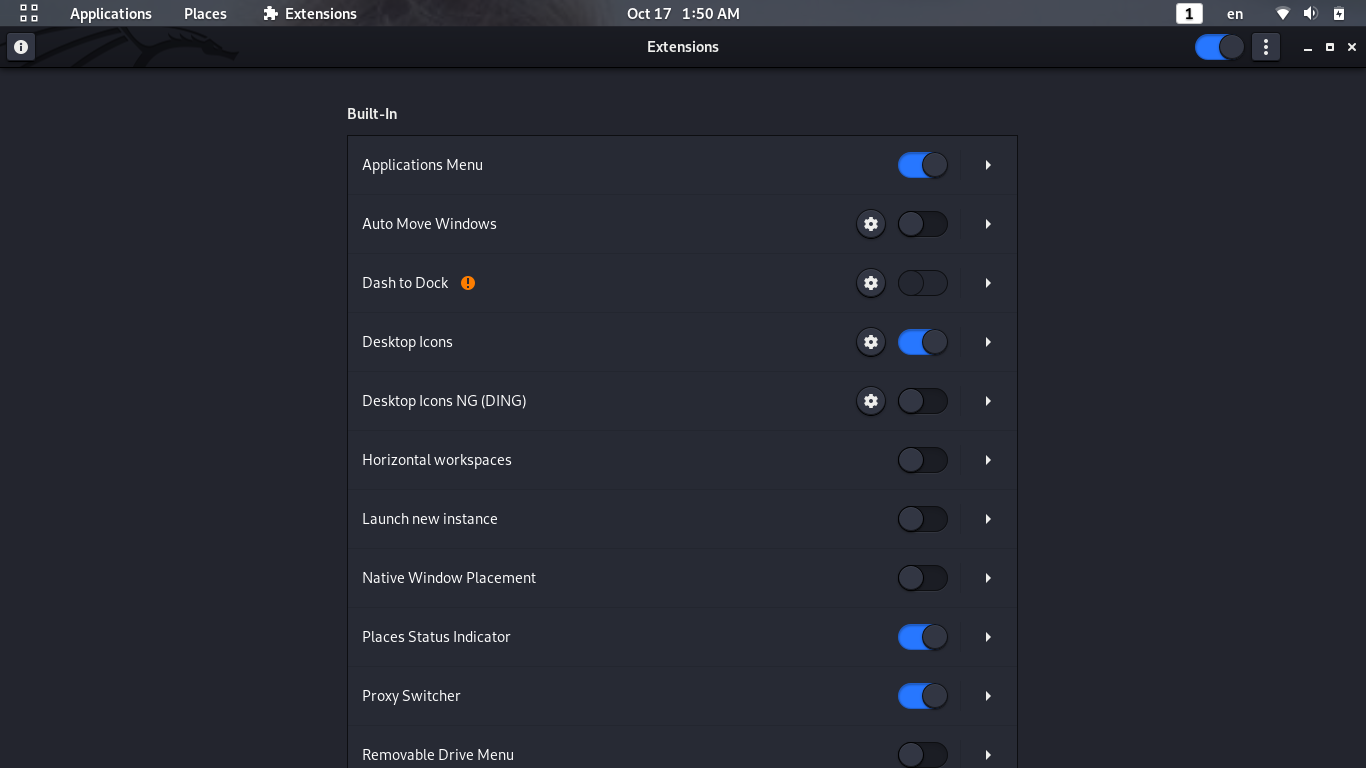 | Summary | 0007412: Dash to Dock feature for kali side bar in gnome extensions appers to be blocked. | ||||
