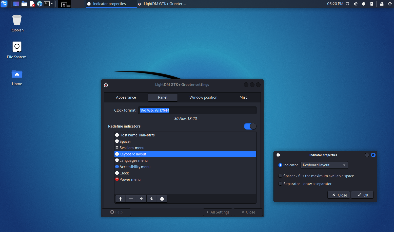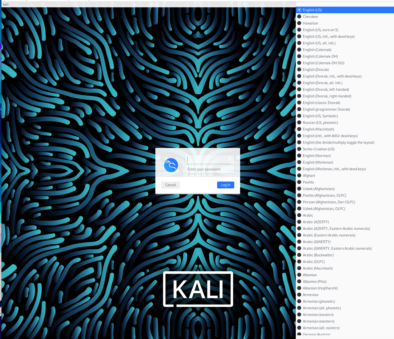 Since Kali 2022.1 the keyboard layout selector is placed in the top-bar of the login screen. To change the system keyboard setting you need to run (and then reboot): |