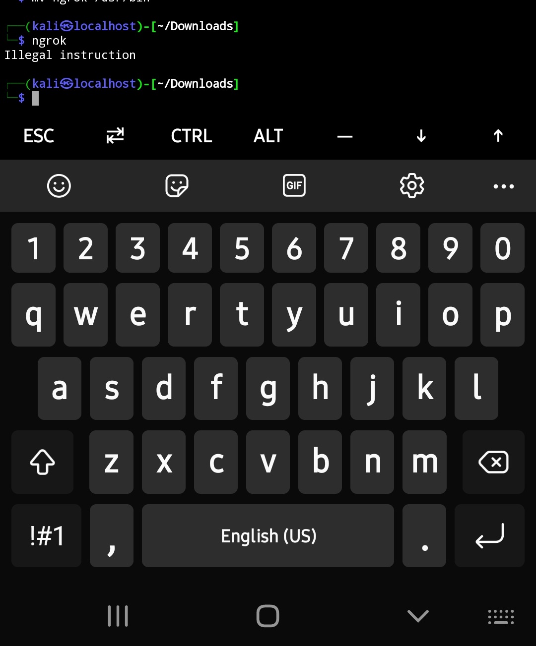 | Description | Hi My name is Nikhil George Tharakan I have query. I install kali linux nethunter in my mobile and I use ngrok in that there's an error found illegal instruction. Can you please why this error occurs | ||||