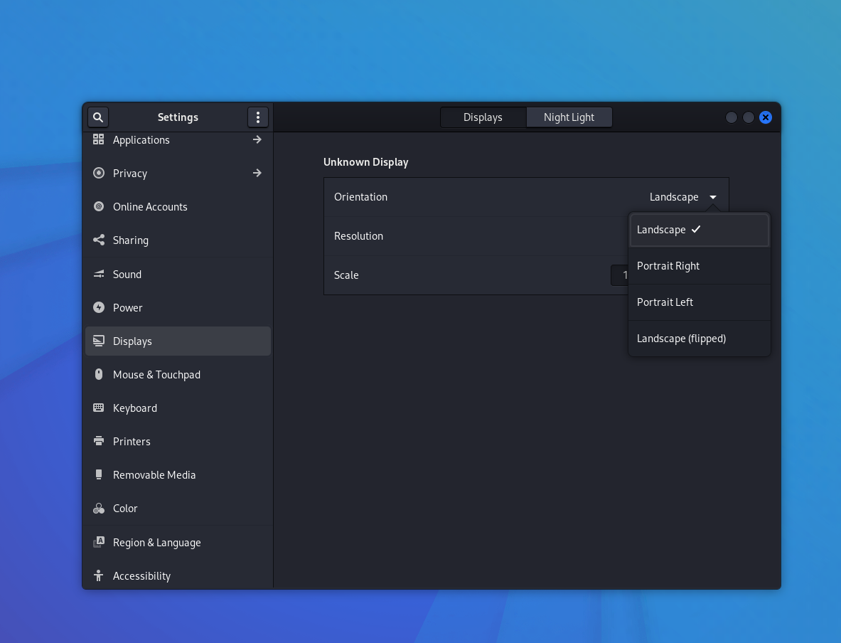 I didn't find this option in the display settings of kali linux, gnome version is 4.1 |