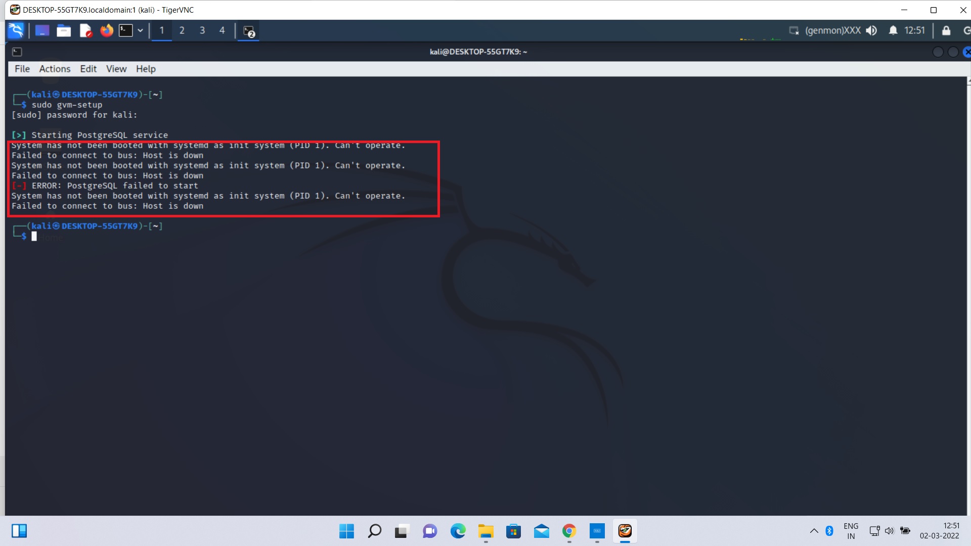 | Summary | 0007603: GVM-Setup error while running in Kali under WSL | ||||
