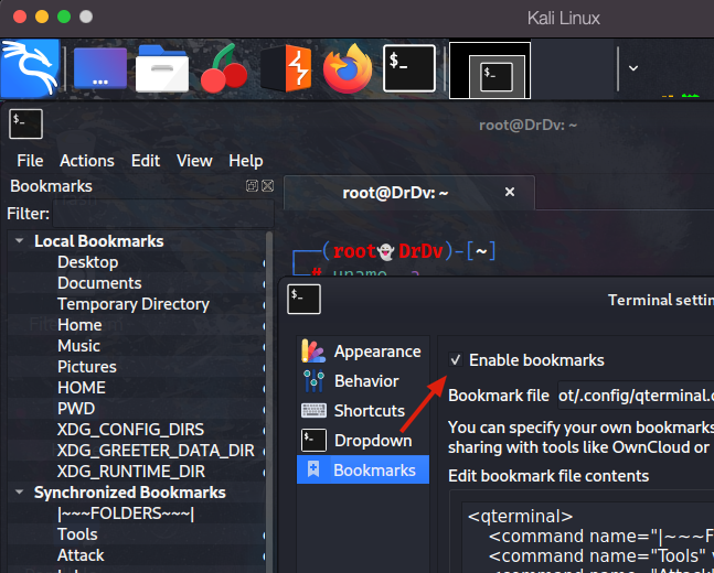 alfakali, I'v installed 2022.1 also but it's the same. can you please provide a screenshot from qterminal with Bookmarks open ? |