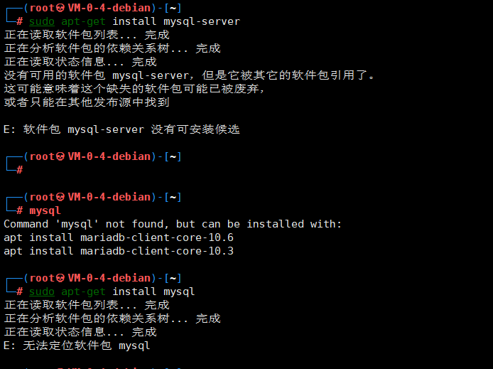 Sorry but this is not a bug report. If you want to install mysql / mariadb back you can do so by runing: You can't find the package mysql-server because on debian it was replaced by mariadb (due to licenses, but totally compatible). The package default-mysql-server is an alias to get the real package that Debian recommends. In fact the command |