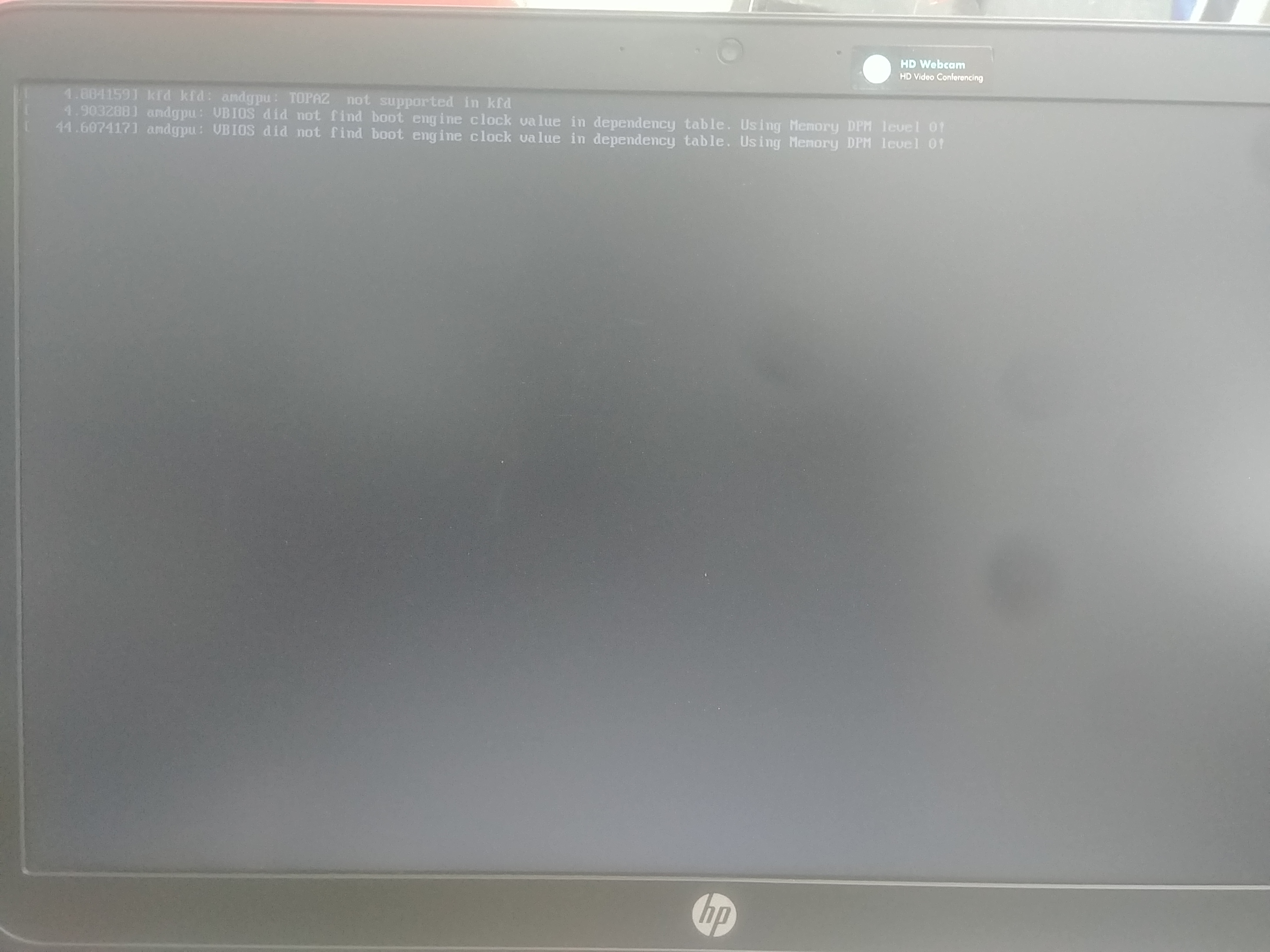 Have you tried upgrading your bios? Or searching for the first error message and testing some of the results from that? Seems to me that the TOPAZ not supported in kfd is the root of the problem. |