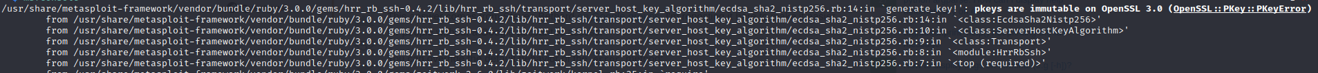 Thanks for taking a look :+1: Just an update on our side - I'm working through upgrading metasploit-framework for improved OpenSSL 3 support currently - https://github.com/rapid7/metasploit-framework/pull/16800. The unit tests are now passing green, but there will still be modules that are broken if OpenSSL is being used and there's not a corresponding unit test to catch regressions. So far there's 4 Ruby library dependencies that will need updated upstream to work with OpenSSL 3 - I've got PRs created for 3 of the libraries now. We might need to temporarily fork/monkey patch those libraries on Rapid7's side to unblock a release. I'm hoping to get our changes landed for the next release or so, so hopefully 1-2 weeks. I haven't tested other Ruby tools in Kali's ecosystem, but there's the potential for those tools to also have issues. |