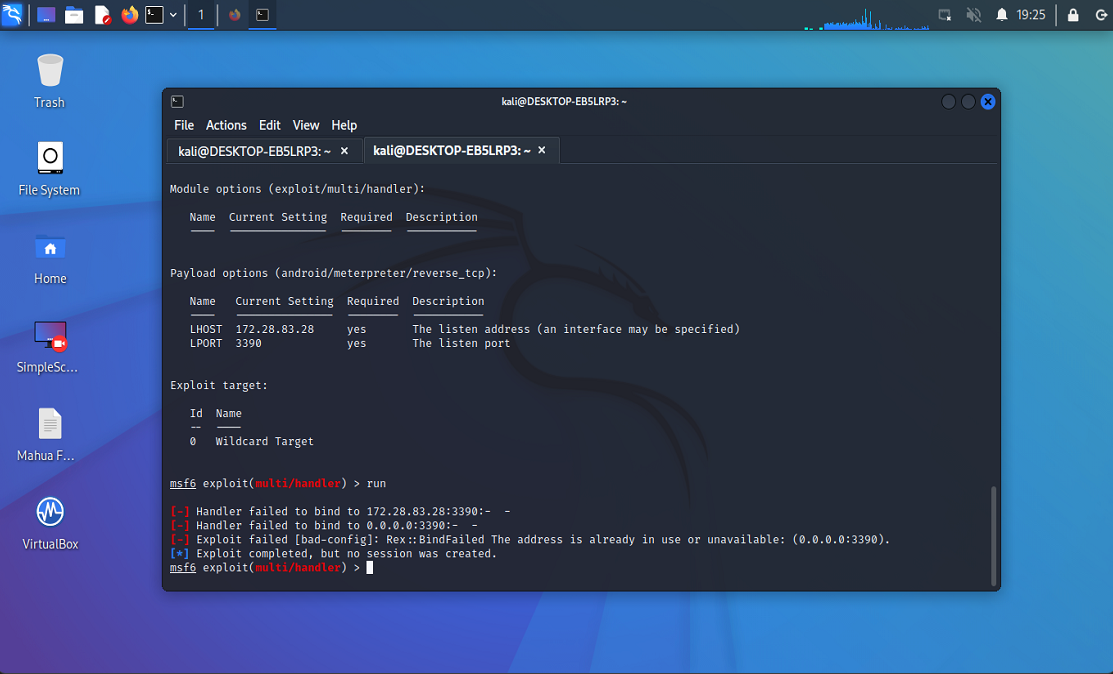 | Description | Exploit completed But No session Created. | ||||