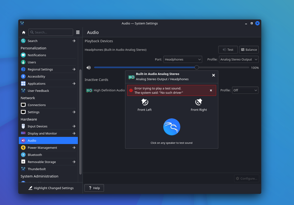 | Description | i have plasma kde environment but it selects a sound driver that's not in my computer and i cannot change it | ||||