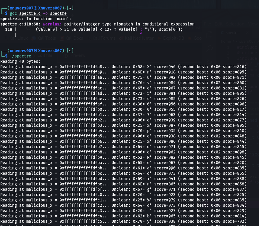 You just copied the script from here https://spectreattack.com/spectre.pdf This doesn't prove the kernel is vulnerable |