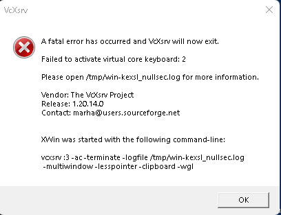 | Summary | 0008110: Kali-win-kex unable to connect to socket, Failed to activate virtual keyboard: 2, Error in VcXsvr. | ||||