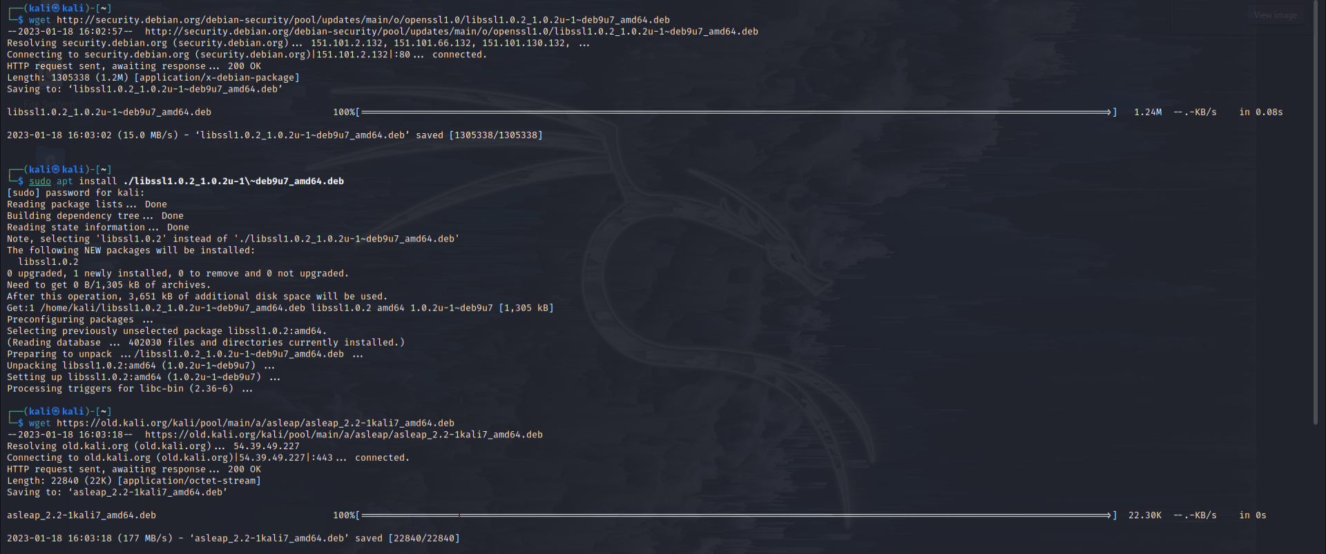 | Description | After downloading the latest version of aleap (asleap_2.3~git20201128.254acab-0kali1) from the kali-rolling repository, asleap gives the following error message when trying to crack MSCHAPv2: "Could not recover last 2 bytes of hash from the challenge/response. Sorry it didn't work out." Installing asleap 2.2-1kali7 from https://old.kali.org repository along with the necessary libssl1.0.2 library allows asleap to crack the same MSCHAPv2 with no issues. | ||||