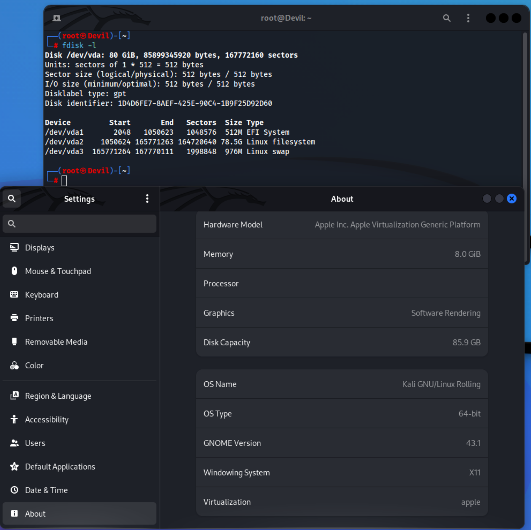 this may be due to apple virtualizer. Or bitdefender might be interfering. I don't know if it's from Kali or not. |