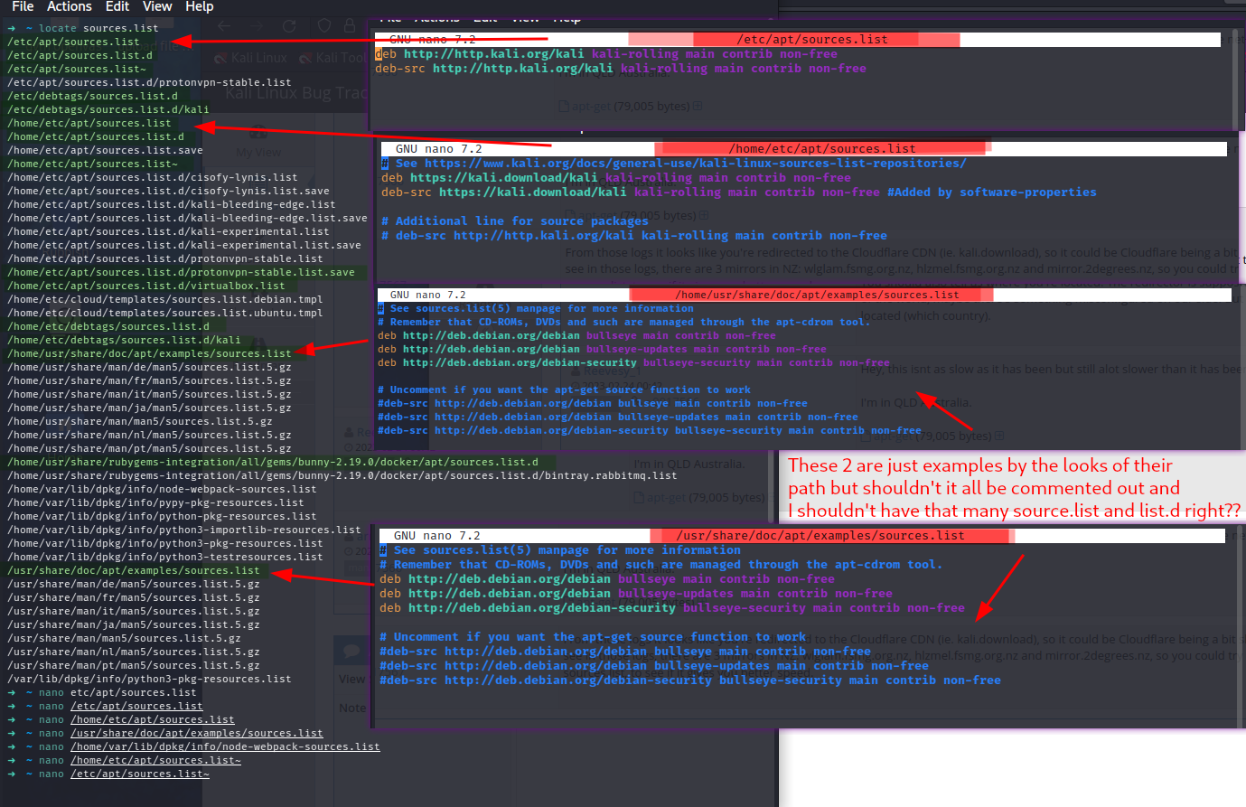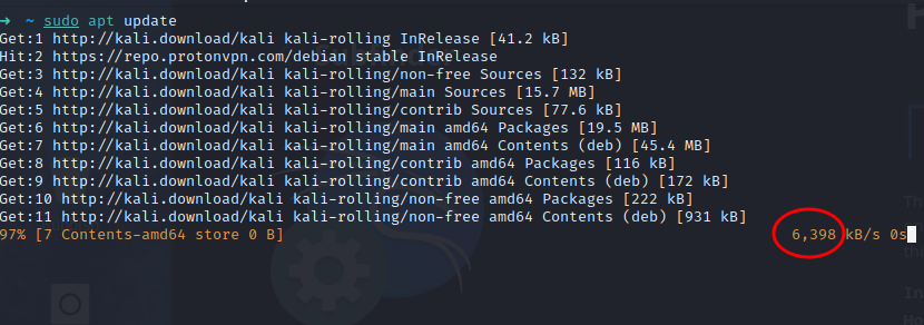 I added mirror to the sources.list.d file as i seen somewhere that its the better way, but as you can see with screen shot, I dont think its better way for this instance, maybe for the protonvpn one as its not a kali one, but it looks hit n miss as to what it uses like this. It seems to go quick when it feels like it which isnt all that often. oh yeh my files are a little screwed up, I somehow took a wrong turn before and lost boot partition and a whole range of constant issues before and after installing new HDD. I was going to fully wipe and try parrot or another but wanted to stick with kali still. It gave me option to keep some files when installing fresh Kali, although it said it would wipe and format the drive also, so wasnt sure what outcome would be and wanted a few things i had on there so i kept files. |