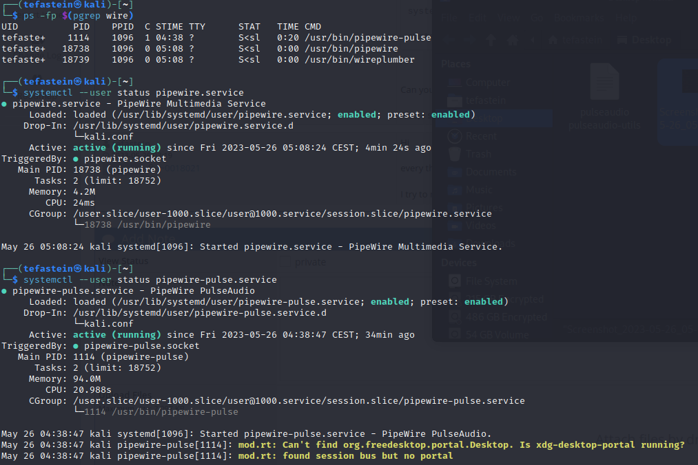 by the way I installed gnome yesterday, because of some touch screen problems with the xfce and for the <span style="color:#49AEE6">ps</span> fax <span style="color:#277FFF">|</span> <span style="color:#49AEE6">grep</span> gnome <span style="color:#277FFF">|</span> <span style="color:#49AEE6">grep</span> pulse I don't get any output |