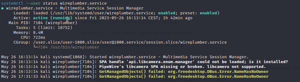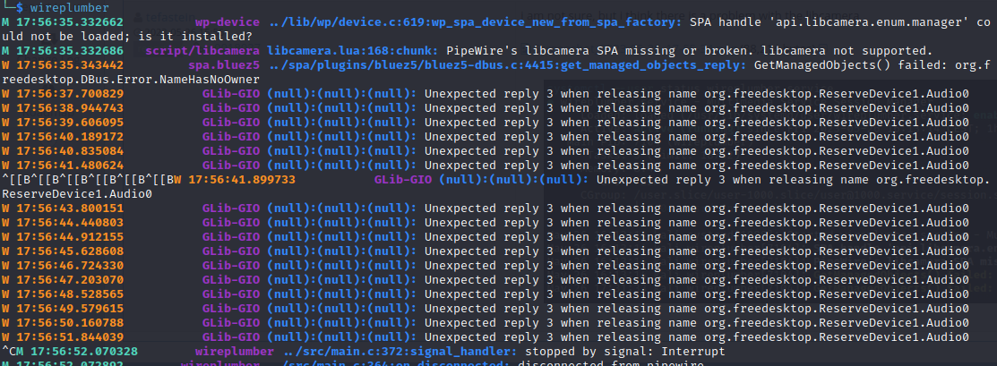 @tefastein I wouldn't worry about libcamera, I've seen the same error messages on every setup that I checked. Just ignore it. However, what I see when I type wpctl is slightly different: