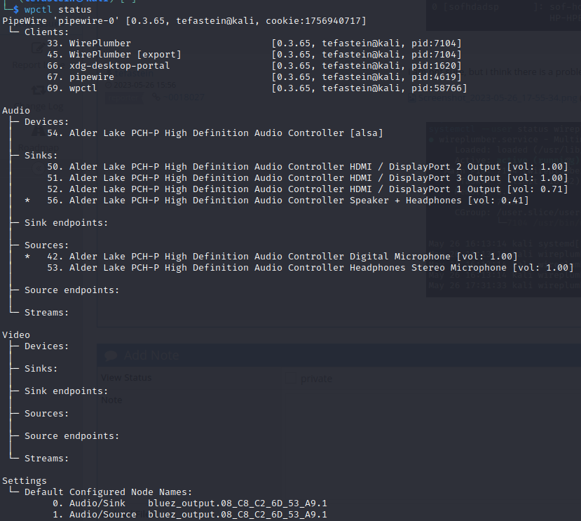 Also, here's the end of wpctl status for me: