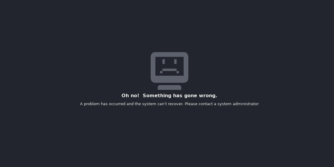 @Vm001 Did you just run out of disk space or something? I can't help really. The "Oh no" screen shows that GNOME can't boot, so you need to instead open a console: type <Ctrl>+<Shift>+<Fx> (Fx being F1, F2, F3, just pick one), except that in VM you can't type that as far as I know, so instead you need to click around, until you find how to send this sequence to the VM. At least, that's how it is with QEMU, I don't really know about VMware. Anyway. Then, after you manage to get a console, log in, then check the logs and understand what's wrong. This requires technical skills. You can try to get supports from the community (https://forums.kali.org for example). But at this point, your problem is not related to Kali, it's more generally "How to debug a Linux OS that doesn't boot". In any case, what you report is not a bug in Kali, and here is not the place for general Linux support, so I'm closing the issue. Good luck. |