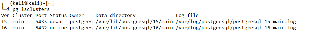 sudo pg_lsclusters |