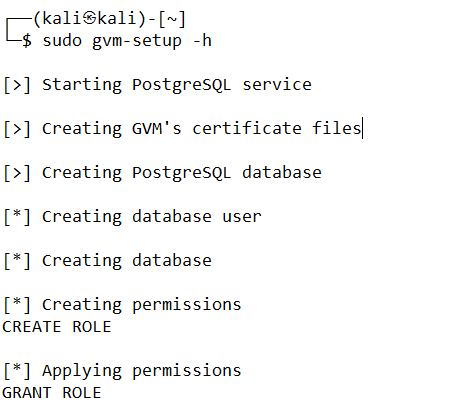 sudo gvm-setup -h [>] Starting PostgreSQL service |