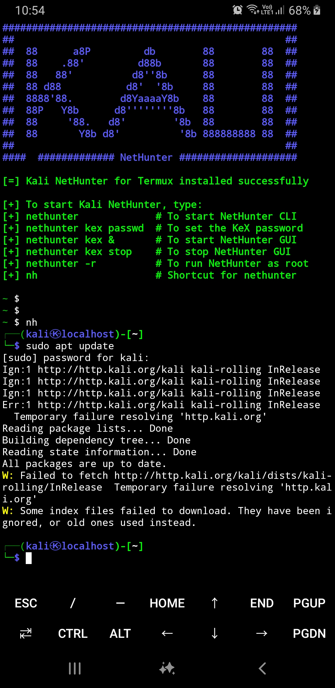 W: Failed to fetch http://http.kali.org/kali/dists/kali-rolling/InRelease Temporary failure resolving 'http.kali.org'