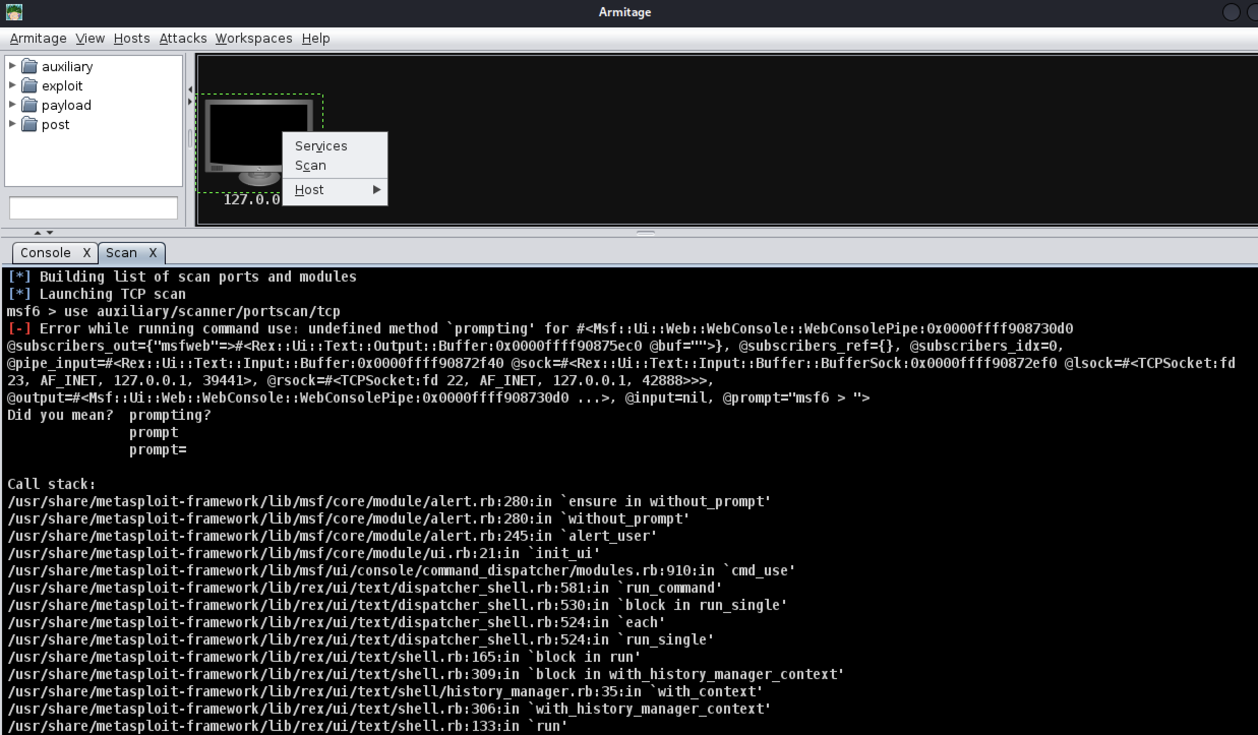 | Description | It seems no matter what I do, I can't get armitage to work with metasploit although on a normal x-terminal Metasploit works just fine. I'm using the latest rolling release of Kali on AARCH64 (M1 Mac) processor in a vm on utm. The screenshot with the terminal is the one where just using metasploit works. The two screenshots of Armitage demonstrates the metasploit console's lack of function and erratic behaivior when working with Armitage. Is there any I can fix this? | ||||