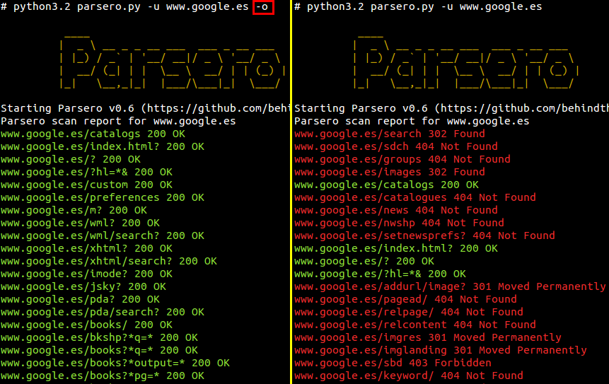 $ parsero -h usage: parsero.py [-h] [-u URL] [-o] [-sb] optional arguments: Example root@kali:~# parsero -u www.example.com -sb |