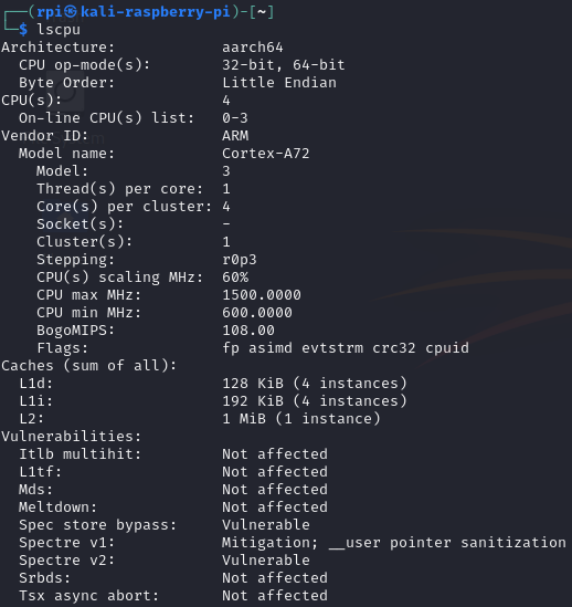 | Summary | 0008824: Why does the lscpu show Vulnerable Status? | ||||