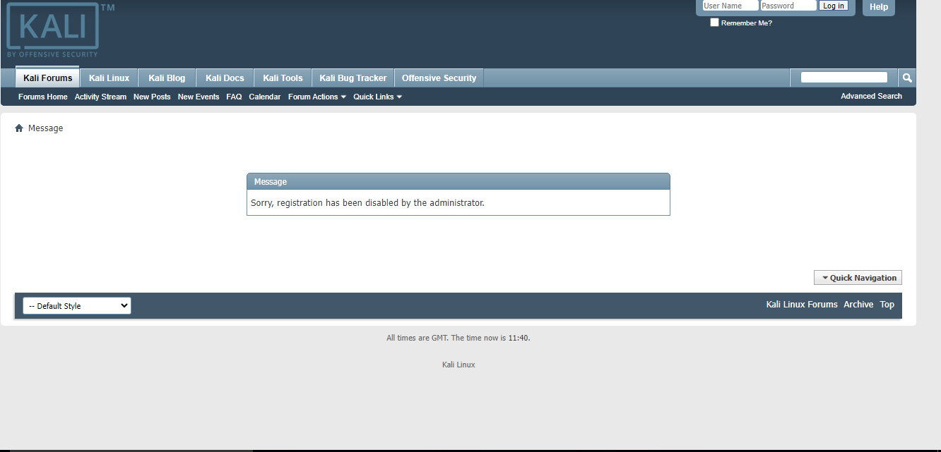 | Description | "When I was trying to register on the Kali Linux forum to find a solution to my problem, it said 'registration has been disabled.'" email:[email protected] | ||||