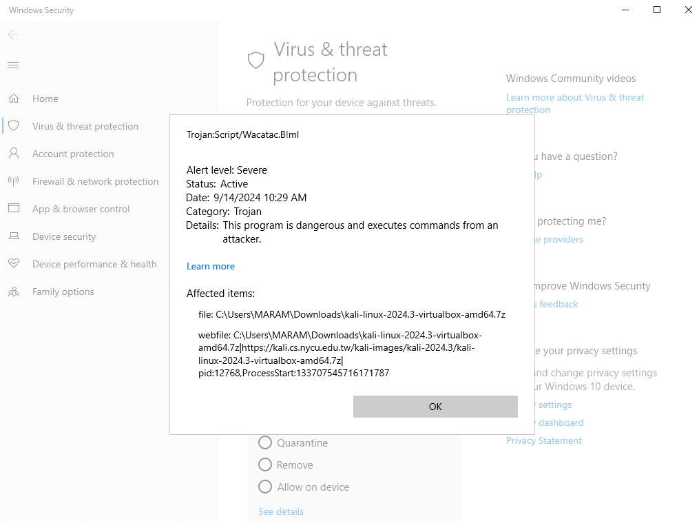 | Description | trojan virus found inkali-linux-2024.3-virtualbox-amd64.7z | ||||