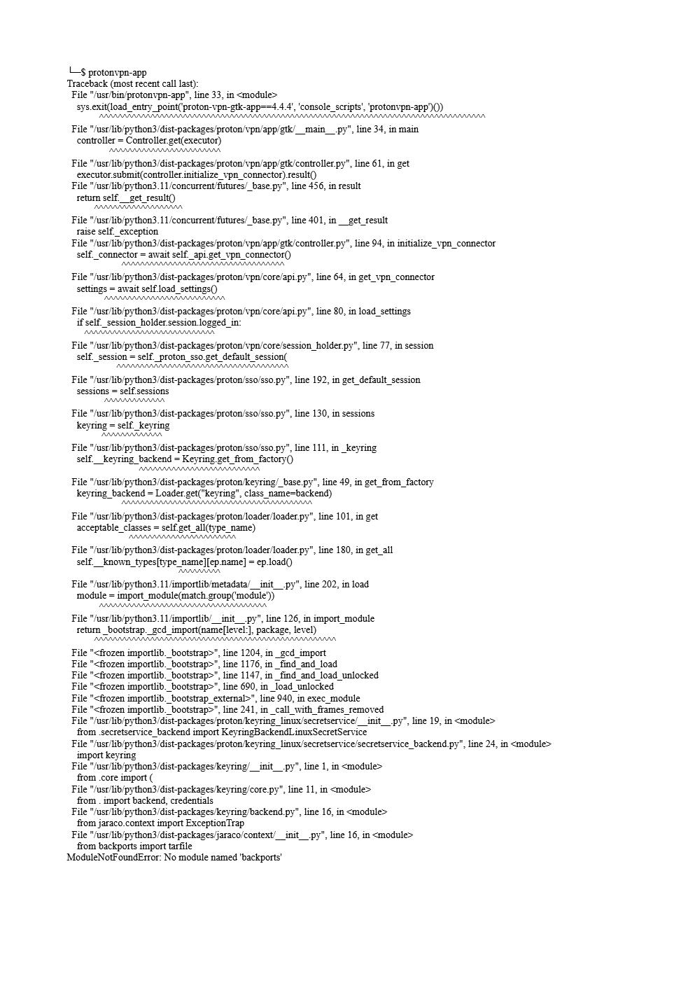| Summary | 0008916: Proton VPN stopped running | ||||