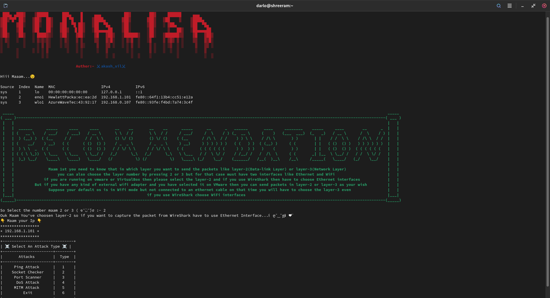 | Description | [Name] - Project Monalisa [Version] - 0.1.0 [Homepage] - https://github.com/Akash420-oss/Project-Monalisa [Download] - https://github.com/Akash420-oss/Project-Monalisa/releases/tag/Project-Monalisa0.1.0 [Author] - Akash Sil [Licence] - MIT [Description] - This Project based on Networking. Actually i've made this project for those who don't know about how networking protocols are worked and commandline argument just like nmap or any linux tools do. But here you can run the command with "sudo mona" that is it. While run this you have to provide the answers this project ask you some questions like which type of attack you want to choose?, give the target ip or provide the port number etc lots of questions are there but based on that you'll get a better result, i've made this instead of commandline arguments. It has 5 types of attacks like 1. Ping Attack, 2. Socket Programming, 3. Port Scanning, 4. DoS Attack, 5. MITM Attack. Under Ping Attack 6 types of Ping Attacks like IP,TCP,UDP,ICMP,ARP,Default ping etc. But it will only for host discovery purpose. Lots of attacks are there. [Dependencies] - nmap,wireshark,firefox-esr,tshark,tcpdump,python [Similar tools] - Network scanning tools like(nmap,scapy etc) [Activity] - I started this project in the month of July on 2023 year. Right now i am just changing some minor issues. [How to install] - Check out the download link after that you'll find a debian file(e.g. project-monalisa.deb) then download it and run it as "dpkg -i project-monalisa.deb" [How to use] - Command is "sudo mona" [Packaged] - It is debian based Packaged. | ||||